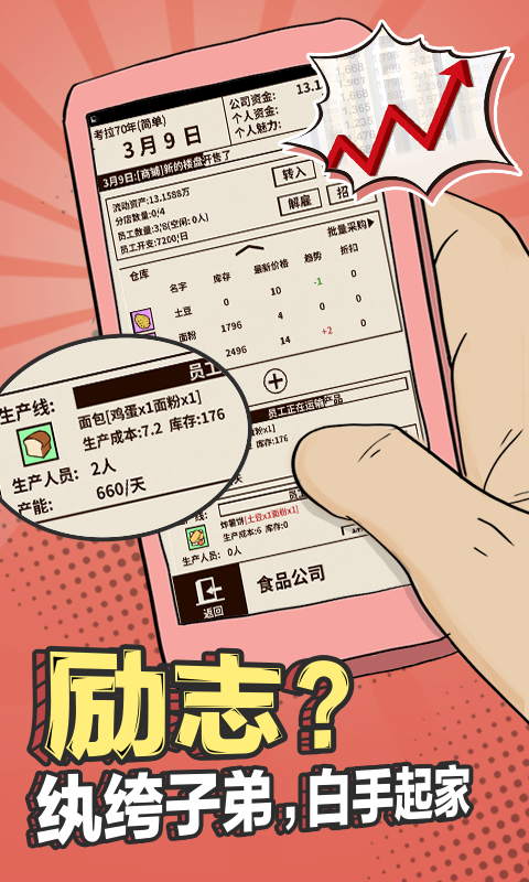 随着研究开发,公司的产品也越来越丰富,从简单的薯条面包,到价值千金的豪车。你天生的经商头脑带着公司逐步进入轨道。