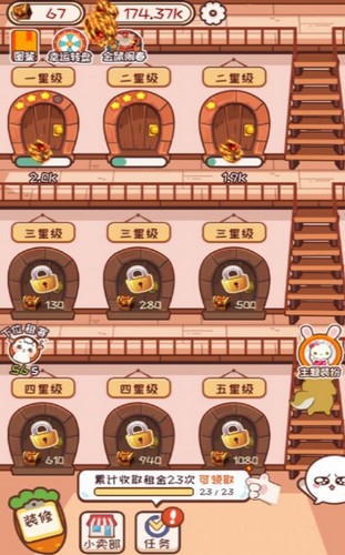 玩家每天都可以在游戏中登录,这样您的酒店就可以欢迎更多的客人,并使收入翻一番。为更多客户提供方便、住宿和就餐,用更简单的方式挂机,解锁新内容。拥有住房的价格也不一样,玩家可以完成指定的任务并解锁。