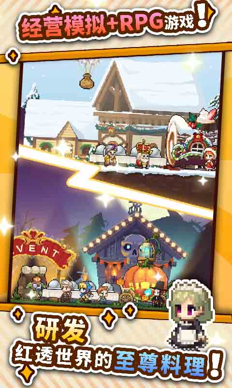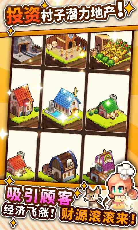 管理收益,雇佣厨师、升级英雄,投资村庄,将自己的收益最大化!