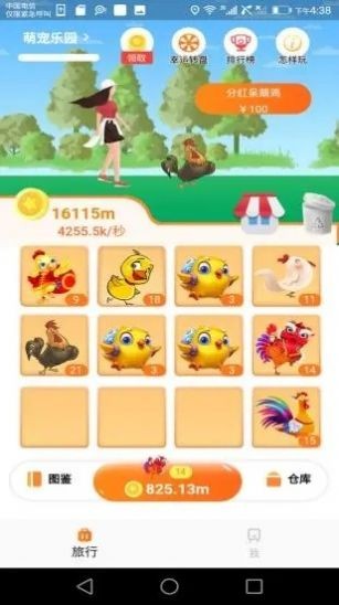 小鸡环游世界的游戏是一种不断增长的喂食水平的游戏。如果你看到越来越多的角色,你就会被提拔,然后继续进化。鸡可以变成凤凰,所以我们不要自暴自弃。只要愿意发展,就可以直接变强,玩的时候就会有效益,所以玩的时候一定要仔细观察。