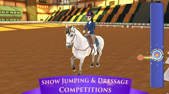 1、模拟真实骑马世界,行动起来,探索这个巨大的卡通世界,在游戏中培育属于自己的小马,让它成长,你的技术也会不断成熟。
