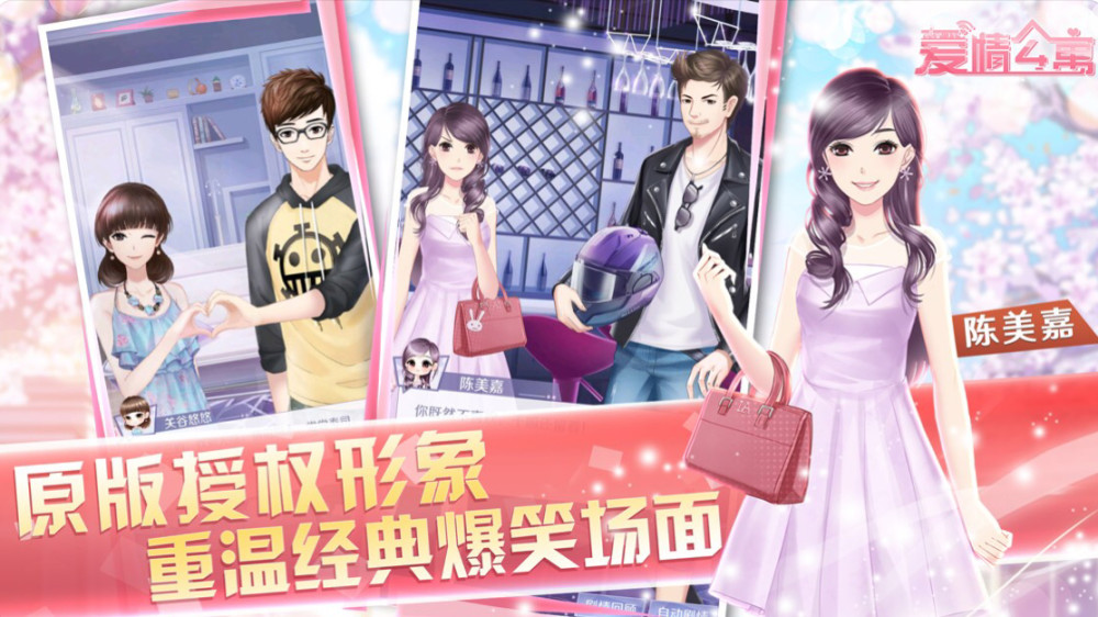《爱情公寓》游戏中设计了电视剧中原班人马作为玩家的伙伴,例如胡一菲、曾小贤、张伟等经典影视形象,陪同玩家一同享受游戏旅程,给予玩家强烈的代入感,让玩家融入其中,感受爱情公寓的魅力。