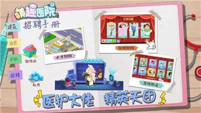 萌趣医院是一款卡通风格的战略管理游戏,游戏玩家作为医生或护士进行患者康复,游戏需要持续开展各科室的工作,游戏操作简单,玩家需要从一开始就学习,扩大你的医院,招募更多的医生和护士,让你的治疗速度更快,让你的医院可以更懦弱。