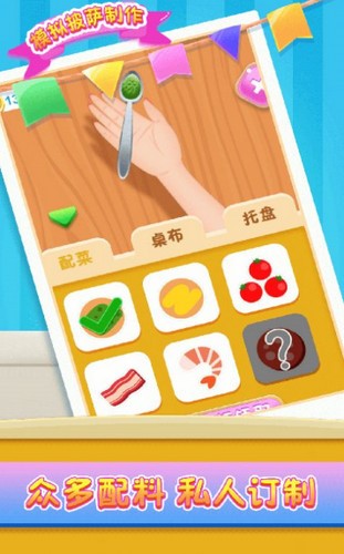 2.有趣的模拟体验,披萨会有不同的配料,选择不同的口味。