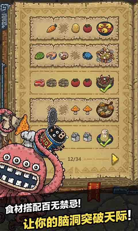 黑暗料理王破解版是一款相当另类的美食制作经营模拟类游戏!你将会扮演一位章鱼大厨,在城市的地下栖居,对着一口大锅每天制作各种料理,有的美味有的却黑暗至极,取决于你放入的材料!你做出的料理会通过地上的餐厅卖给顾客,越好吃评价越高哦!