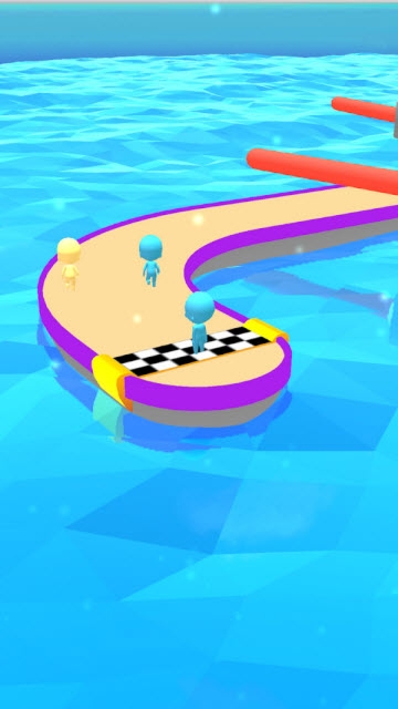 魔性的橡皮小人在水上赛道疯狂奔跑,不断的冲刺前进;