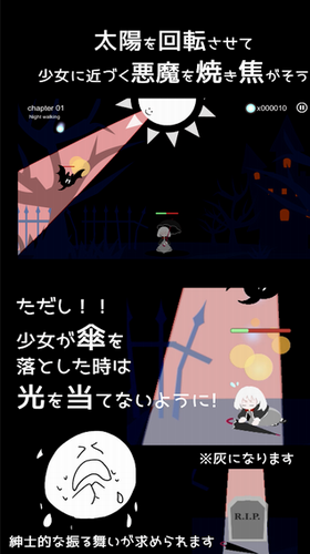 3、当女孩子接触到敌人时,她的洋伞会掉到地上,此时一定不要过长时间照射女孩,否则女孩会化为灰烬;