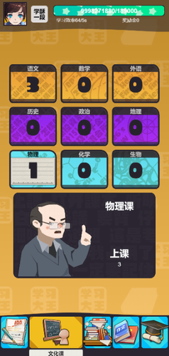 3、每一层的boss(入学考试)没有硬性的得分要求,但得分的高低会影响入取的学校,学校会影响各个属性的加成。