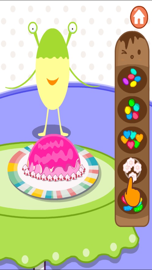 蛋糕是大多数孩子的最爱,J先生也不例外!你想做一个又漂亮又好吃的蛋糕吗?这里有很多漂亮的食材。你可以根据你喜欢的盘子、形状、奶油、水果和装饰品做一个满意的蛋糕。做蛋糕的过程给宝宝带来了亲身体验,开启了他们的创新思维,让他们发挥了想象力。让我们开始享受这场蛋糕游戏吧!