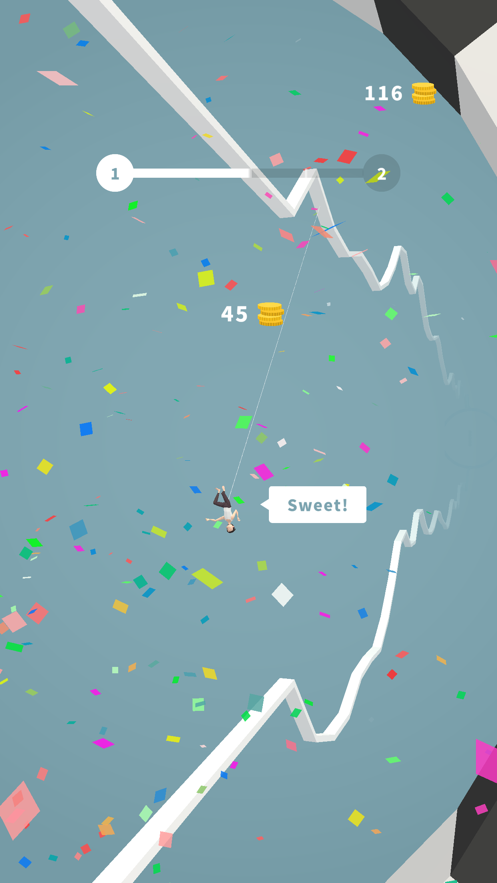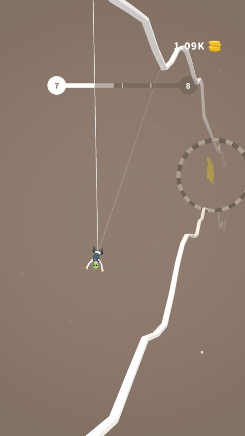 2,通过点击和滑动屏幕控制人物不断抓住绳子向前移动;