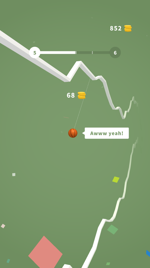 及时抓住绳子往前走。这个关卡会越来越难。收集硬币,收集很多皮肤。