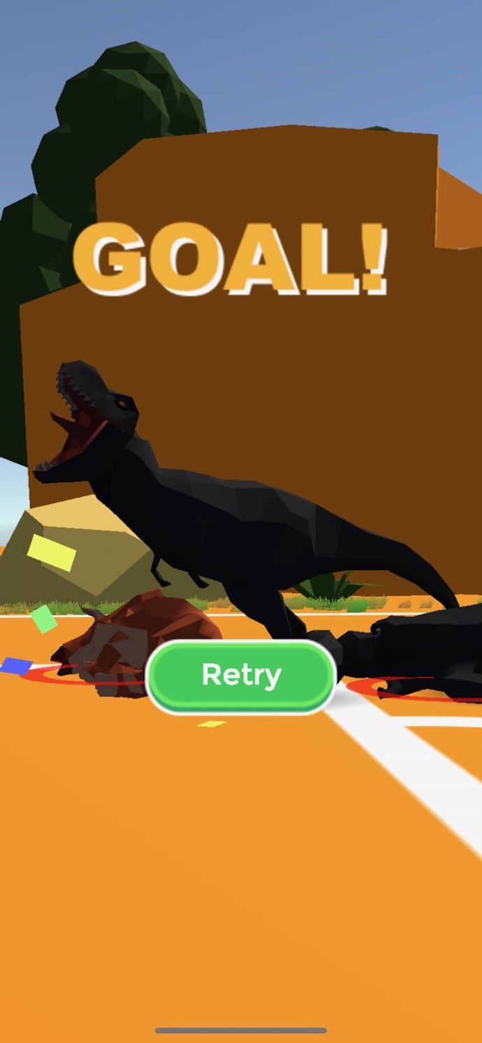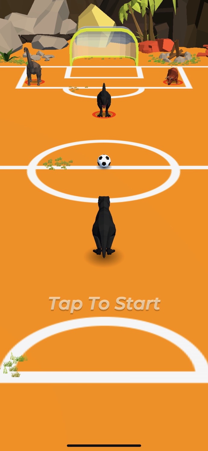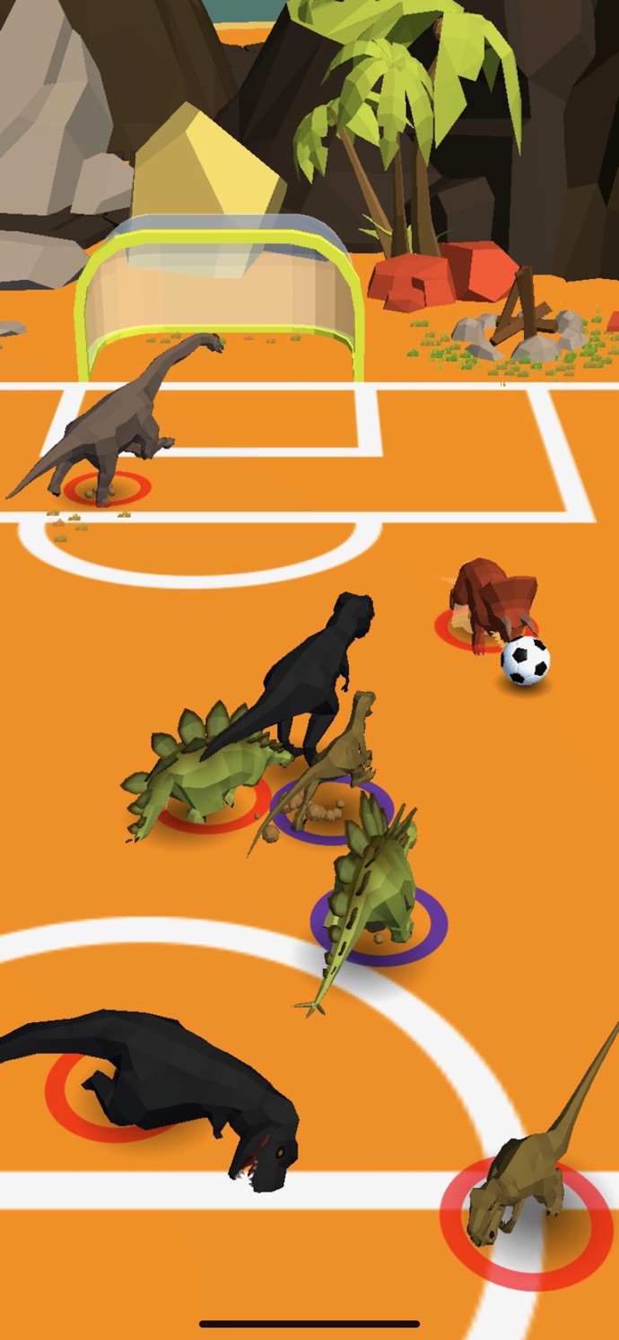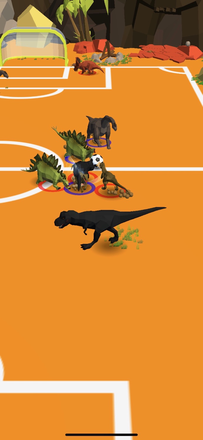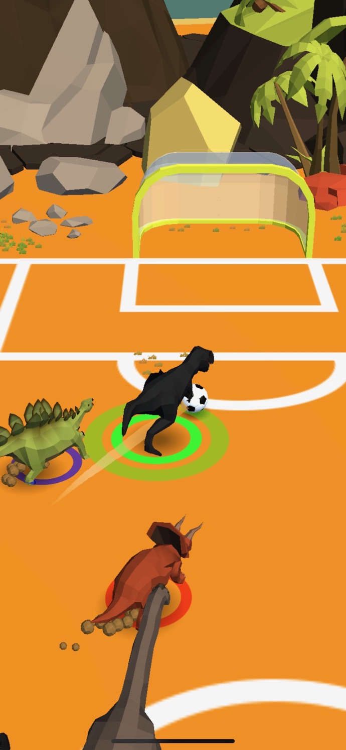 b、轻松的点击控制恐龙运球,并蓄力发起猛烈的攻击进球;