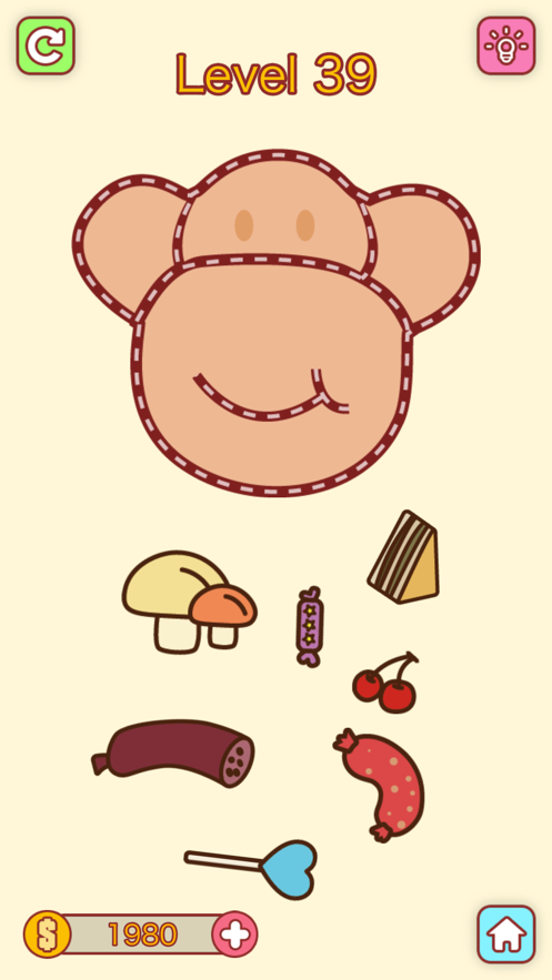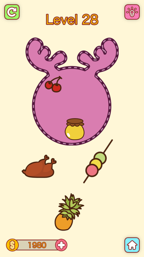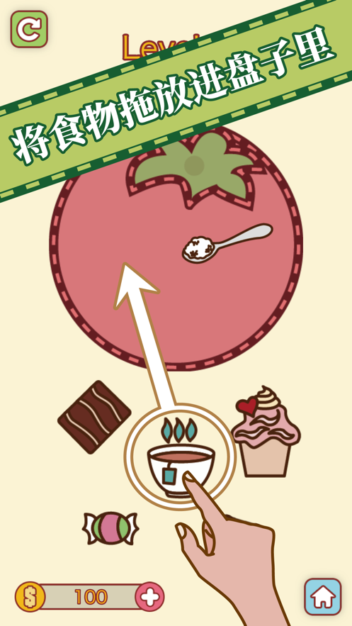 游戏中有各种不同形状的盘子,每个关卡放置的食物的数量和类型也不同。
