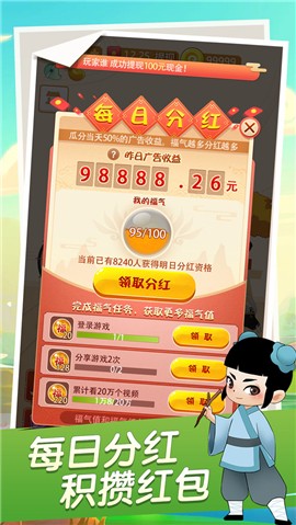 歌词小书生红包版,可以真正赚钱有趣的答题休闲游戏,游戏以中国文化为核心主题,成为歌词小书生可以轻松完成问答的游戏,可以领取红包,随机名额,最好的时间可以交换,超级玩休闲娱乐,多种模式可供选择,在丰富自己的成语词库提高知识和能力的同时,还可以赚取一些零花钱!