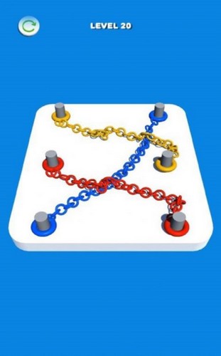 游戏很考验玩家的观察和思维逻辑能力,只要是你喜欢玩的类型,直接体验;想对办法顺利解决,每个关卡的设计难度都在逐渐增加,难度越大就要很有耐心。成功必须靠个人智慧,各种颜色的绳子都是交织在一起的,需要很长时间。