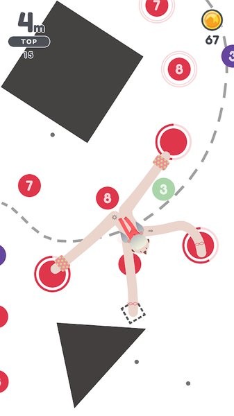 长腿攀登者是一款休闲智能的圆形图片攀登游戏,游戏简单有趣,玩家可以在游戏中自由冒险,体验好玩的游戏,操控面状人物,攀爬屏幕上的节点,稍微向前一点,人物的动作非常搞笑,有各种皮肤和配件都可以在游戏中使用!