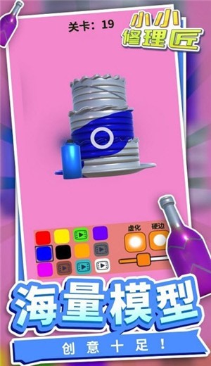小修理工是一款非常有趣的休闲游戏,精美的图形设计,各种有趣的场景,每一关都有新的模型等着你去修理,丰富多样的关卡带来了各种精彩的挑战,新颖的操作方式保证了你的新鲜感,一些更复杂的关卡更考验玩家的操作和耐心,相信这款游戏能给你带来不一样的感官体验!
