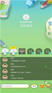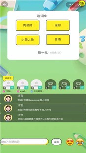 你画我猜是一款2D卡通风格的休闲益智游戏,游戏中玩家要玩趣味的猜画游戏,玩家将在游戏中以绘画者和猜测者两个角色进行挑战。玩家可以自由选择不同的角色,并根据游戏中的说明进行绘制。这是一个双向有趣的想象游戏,它会启动你的大脑,看看你是否能想出一块。