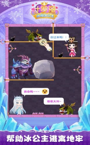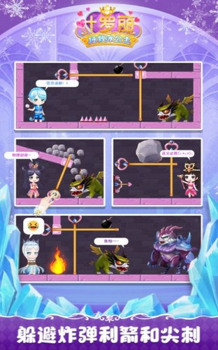 叶罗丽营救冰公主是一款趣味十足的休闲游戏,从各种怪兽手中,拯救可爱的冰公主,操作简单,找到正确的拉销方式即可。只有找到正确的方法,才能在不触发机制的情况下安全营救公主,每次拉销都要慎重思考。